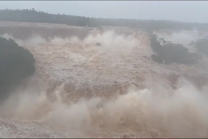 Em média, a vazão das Cataratas do Iguaçu é de 1,5 milhão de litros por segundo. O registro dessa segunda-feira ultrapassa em 16 vezes a normalidade, sendo classificada como a segunda maior da história.