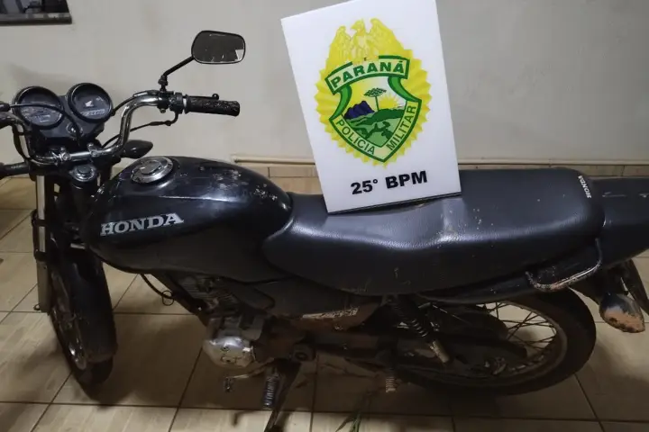 Uma motocicleta Honda CG Titan que havia sido furtada no último sábado (11), em Palotina, foi recuperada pela Polícia Militar (PM) no fim da noite desta quarta-feira (15), em Iporã. O veículo havia sido abandonado em uma via pública da cidade.
