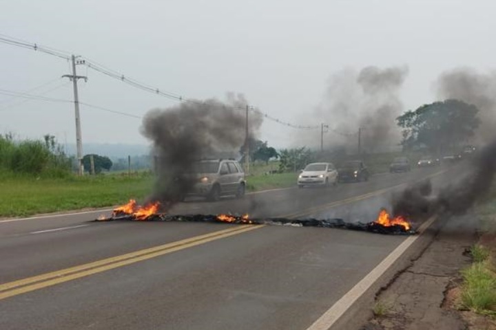 Moradores ateiam fogo em pneus no meio da Estrada Bonfim, em Umuarama