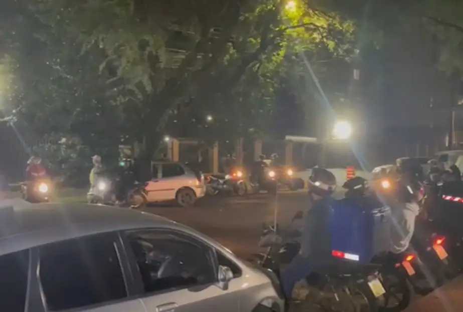 Vários motociclistas que trabalham como entregadores se reuniram para fazer um buzinaço na frente da casa de um cliente no São Cristóvão, em Cascavel, no fim da noite desta sexta-feira (24). Segundo eles, no local mora um homem que seria responsável por vários golpes na compra de lanches na cidade.