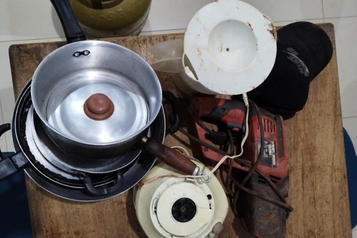A situação foi registrada às 17h45. Uma das vítimas, de 64 anos, relatou à PM que o trio chegou em sua propriedade dizendo que iria pescar nas proximidades. Aproveitando de um momento de descuido do morador, eles furtaram um botijão de gás, um liquidificador, uma furadeira e cinco panelas.
