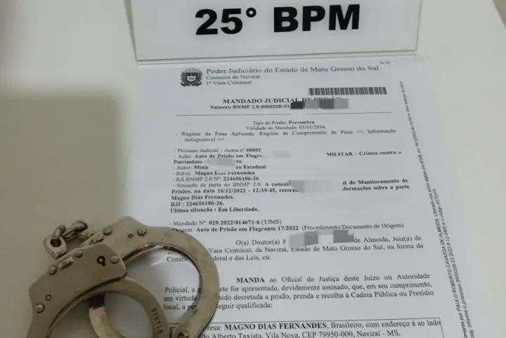 A equipe estava ciente da existência de um mandado de prisão expedido pela 1ª Vara Criminal da comarca de Naviraí/MS. A ordem judicial era em desfavor de um indivíduo de 24 anos, pelo crime de furto, artigo 155 do Código Penal.