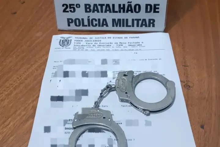 O mandado de prisão foi cumprido por volta das 20h30, durante um patrulhamento pelo bairro. Os policiais abordaram o autor e constataram que contra ele havia o mandado de prisão vigente, expedido pela Vara de Execução em Meio Fechado e Semiaberto de Umuarama.