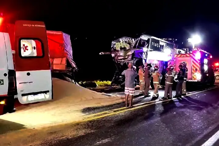 O acidente foi registrado por volta das 23h e mobilizou equipes do Corpo de Bombeiros e Samu. A Polícia Rodoviária Estadual (PRE) também atendeu a ocorrência e apurou que ambos os veículos seguiam pelo mesmo sentido quando, no quilômetro 2 da rodovia, o ônibus teria batido na traseira do caminhão, que transportava soja.