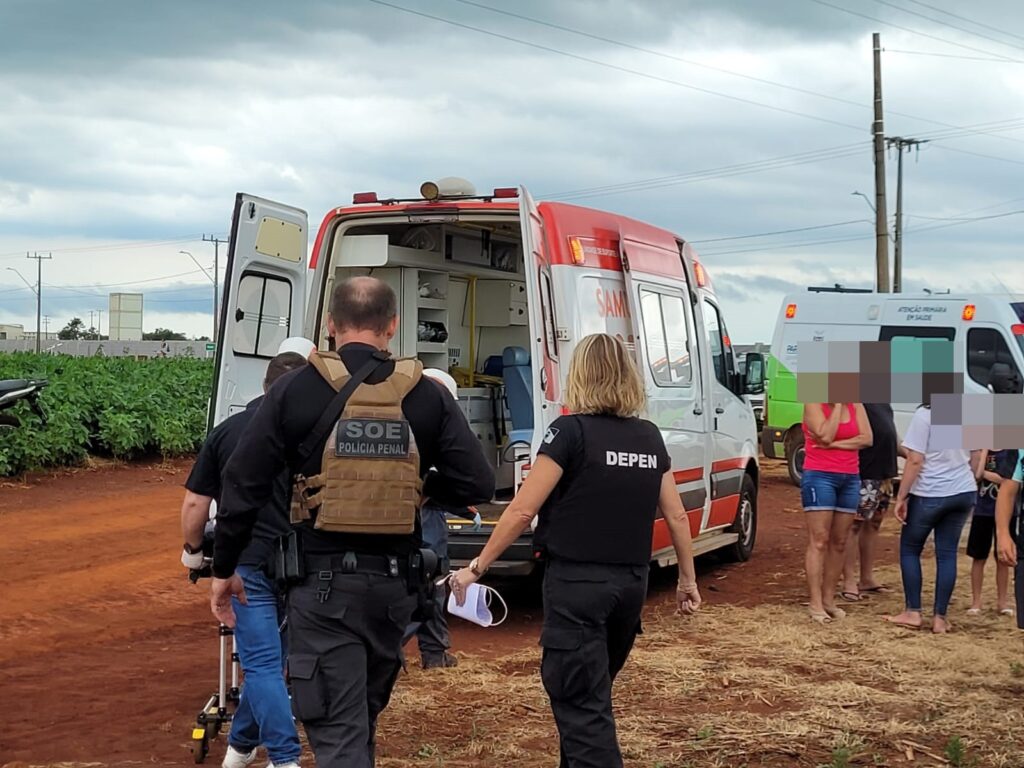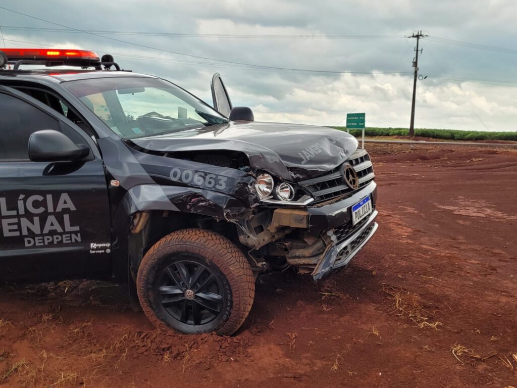 Os outros veículos são uma VW/Amarok com placas de Curitiba, pertencente ao Departamento Penitenciário do Paraná (Deppen) e um Fiat/Pulse vermelho de Nova Santa Rosa.