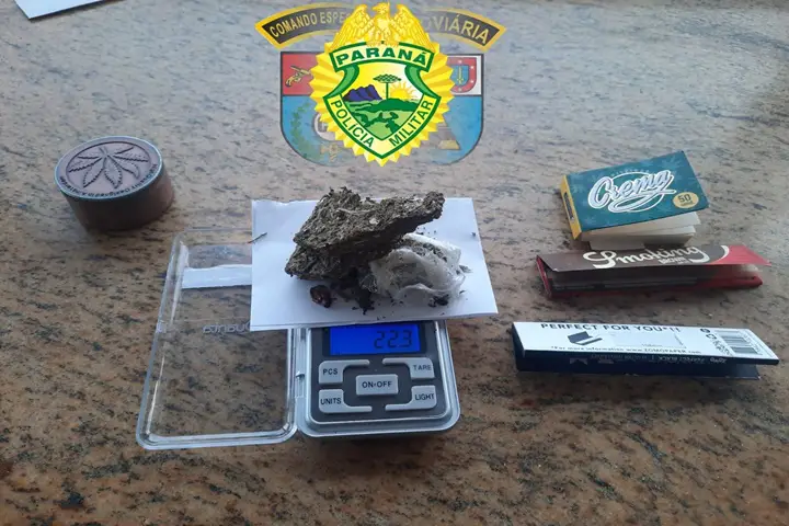 Durante revista no baú tipo bagageiro – que estava acoplado à motocicleta – os policiais encontraram 22,3 gramas de maconha em um pote de plástico escondido dentro de uma bolsa preta. Diante da situação, o jovem foi detido e encaminhado à 21ª Subdivisão Policial de Cianorte. Ele foi liberado após assinar um TCO (Termo Circunstanciado Ocorrência). Já a motocicleta foi apreendida e encaminhada para o pátio da PRE de Tamboara.