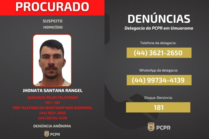 A Polícia Civil de Umuarama divulgou, nesta quinta-feira (4), o cartaz com imagem e nome do autor do homicídio ocorrido no dia 28 de dezembro de 2023, que vitimou Otaide Soares, 66 anos, morador de Santa Eliza. Ele foi esfaqueado no peito e morreu a caminho do atendimento médico no trevo do Parque Jabuticabeiras, em Umuarama.
