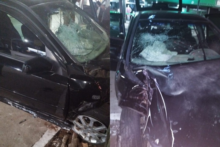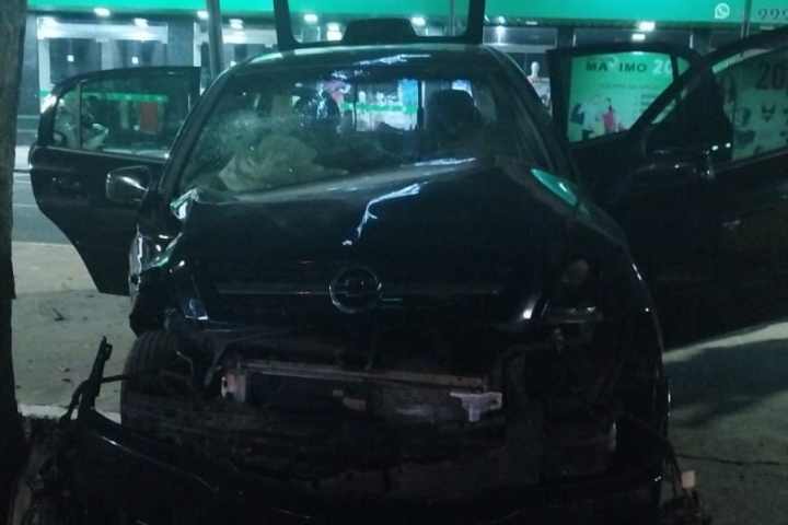 Ladrão bate carro furtado em árvore no canteiro central da avenida Paraná, em Umuarama