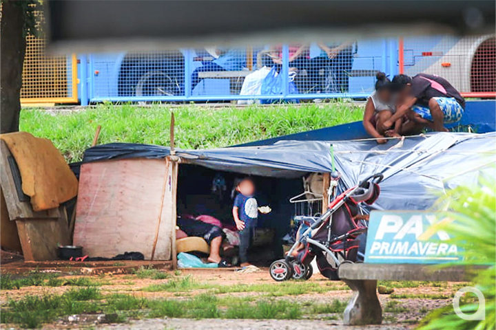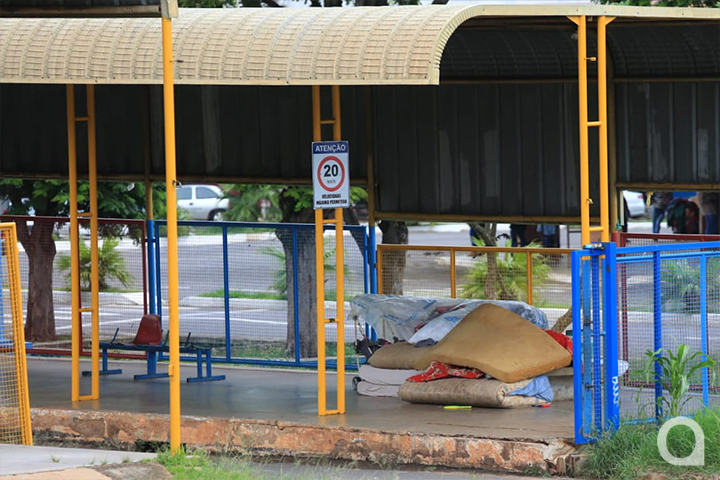 Na tarde desta terça-feira (23), OBemdito esteve no local e constatou a situação. Além do acampamento, ao lado do terminal, colchões e outros objetos foram flagrados dentro do espaço destinado aos usuários do transporte coletivo urbano.