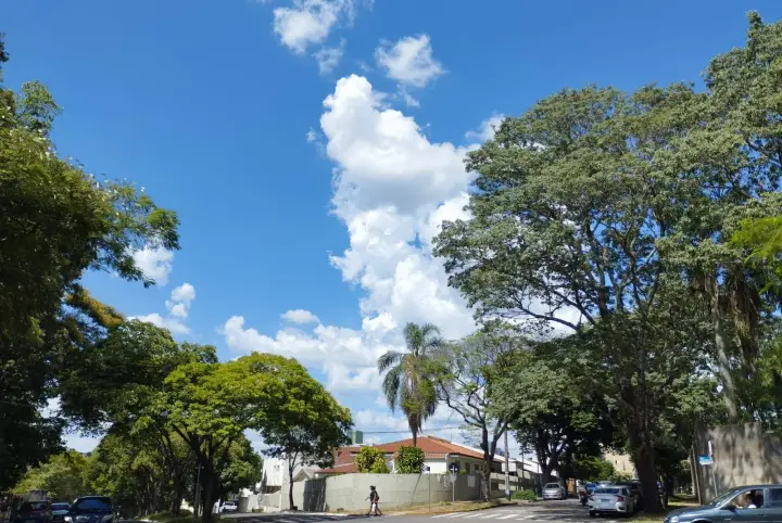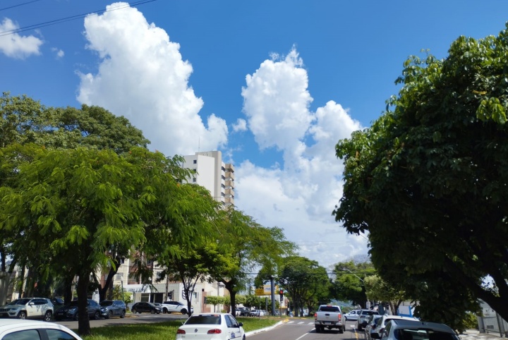 Em Umuarama às 15h30 o termômetro marcava 33,8ºC e a sensação térmica era de 37ºC. O céu estava azul, com algumas formações de nuvens.