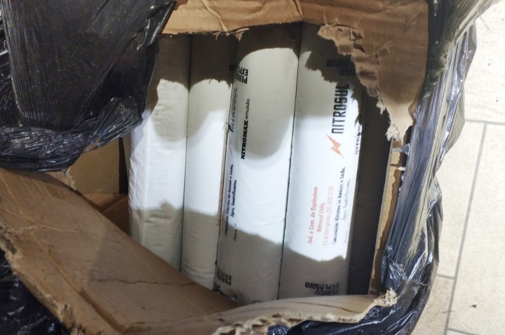 O material é utilizado geralmente por criminosos para explosão de agências bancárias e caixas eletrônicos. Com a informação de que o explosivo seria entregue em uma residência do bairro, uma equipe do Serviço Reservado (P2), do 11º Batalhão da Polícia Militar passou a monitorar a área.