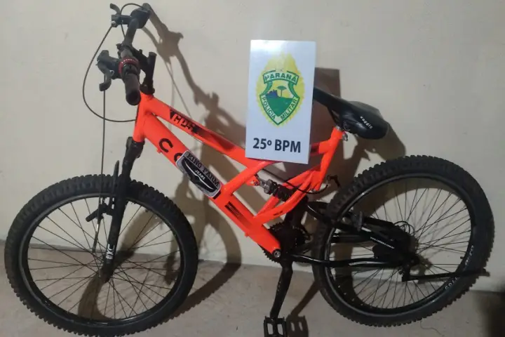 Uma bicicleta que foi tomada de uma residência no Centro de Alto Piquiri foi recuperada pela Polícia Militar (PM) na noite desta quarta-feira (21). De acordo com a proprietária, de 34 anos, o objeto foi levado por um homem que entrou em seu quintal e exigiu o dinheiro de uma suposta dívida.