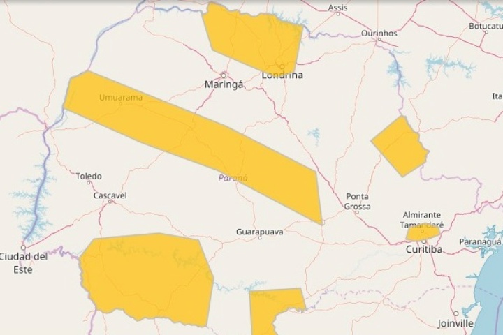 A Defesa Civil do Paraná emitiu, às 14h55 desta quinta-feira (29), um alerta para possibilidade de temporais em Umuarama e em cidades próximas. De acordo com o órgão, o alerta tem validade de 6h, ou seja, até as 21h55 de hoje.
