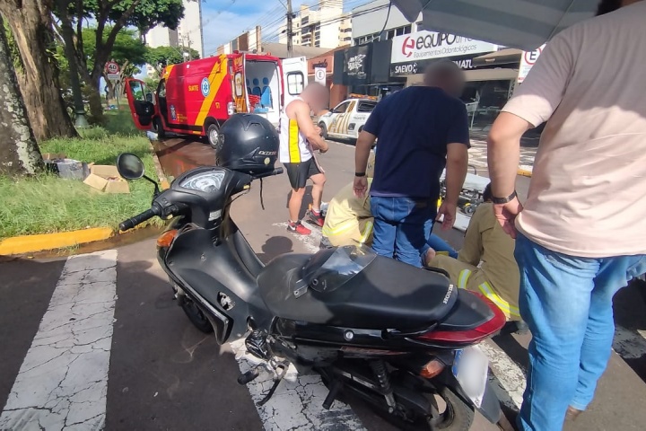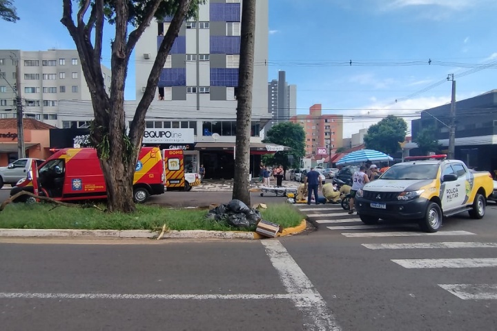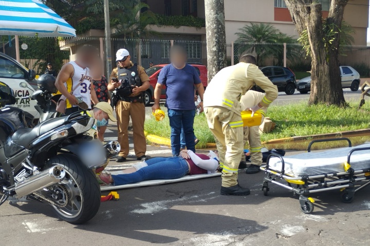Motociclista sofre ferimentos ao ser atingida por carro em cruzamento da avenida Maringá