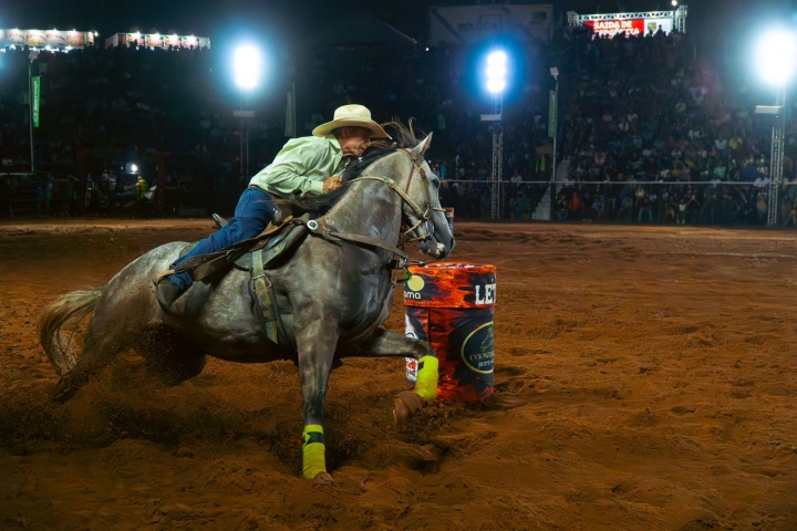 Em seguida, a Prova dos Três Tambores exibiu na arena a graça e a leveza da modalidade. São mais de 50 competidores inscritos (nas categorias adulto – só mulheres; e na mirim, meninos e meninas).