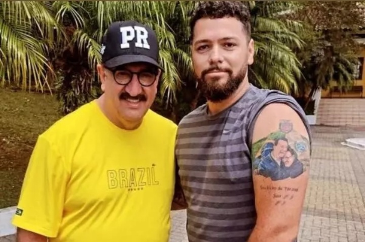 O paranaense conhecido como Camargo Piraquara chamou atenção nas redes sociais ao revelar que fez uma tatuagem no braço do governador do estado Ratinho Jr. junto com o pai, apresentador do SBT. As informações são da RIC. No desenho, o político e o apresentador aparecem abraçados na frente das bandeiras do Paraná e do Brasil, com a frase “Sou bicho do Paraná”.