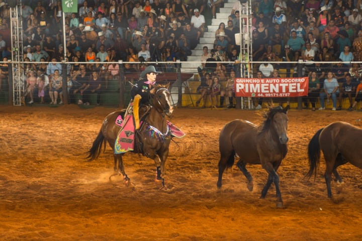 Dividindo a arena com os homens, que são maioria nesse universo country, na 49ª Exposição Agropecuária, Comercial e Industrial de Umuarama/22ª Feira Internacional Ana Cláudia Garcia, 40 anos, e Ana Carolina Tobias, 22 anos, chamam a atenção pela coragem e competência nos atendimentos aos peões em apuros. Mas não perdem a feminilidade, jamais.