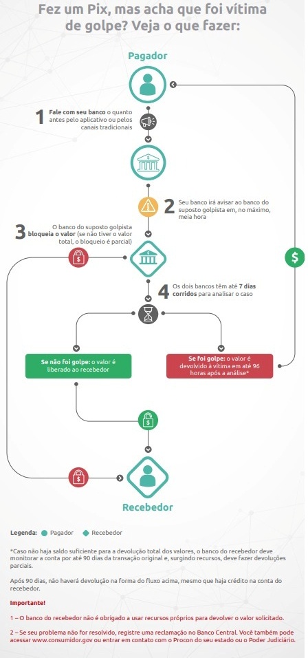 6) Por outro lado, se o banco concluir que não foi uma fraude, os valores são novamente liberados para quem recebeu.