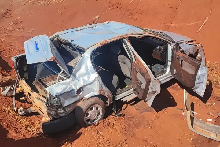Na sequência, o carro capotou e foi parar em uma espécie de vala, ficando completamente retorcido com a sequência de impactos. Felizmente, o condutor não sofreu ferimentos, segundo consta no boletim da 3ª Cia de Polícia Rodoviária Estadual (BPRv).