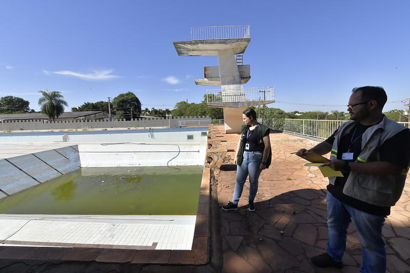 A piscina está sem sugadores que fazem a remoção da água. A cada chuva esse trabalho precisa ser feito com bombas manuais, pelos responsáveis. “Não são achadas larvas do mosquito da dengue porque a piscina recebe tratamento e conta, inclusive, tem boias de cloro – produto que mata as larvas – e também devido à ocorrência de ninfas de libélulas, que são predadoras naturais do mosquito”, completa Taila Crivelaro.