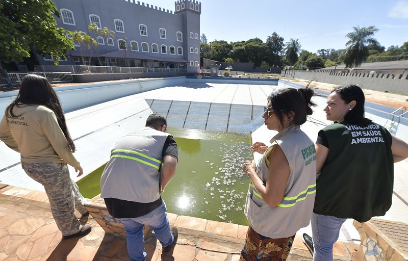 Na vistoria realizada nesta segunda não foram encontrados focos de mosquito Aedes aegypti, transmissor da dengue, zica vírus e febre chikungunya. Embora esteja desativada, a piscina acumula um volume de água das chuvas e vem recebendo tratamento com larvicida.