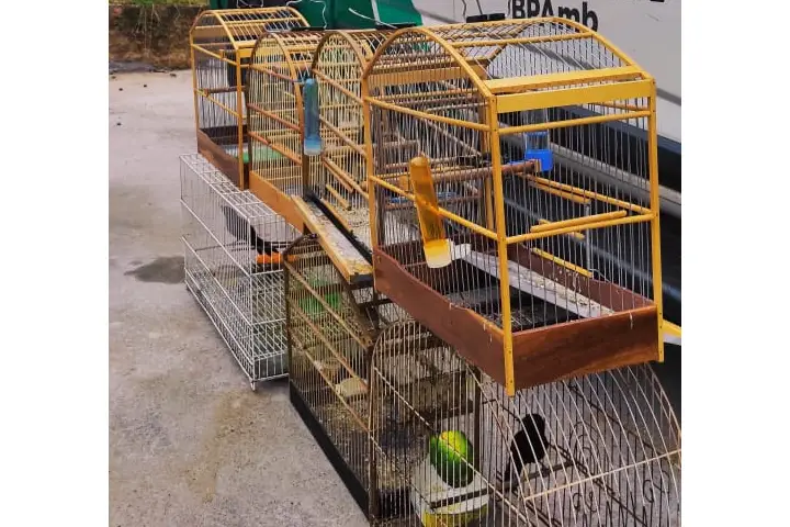 Na primeira residência, havia duas aves coleiro Papa-Capim e um Inhapim. Na segunda, foram encontrados três coleiro Papa-Capim e um Inhapim.
