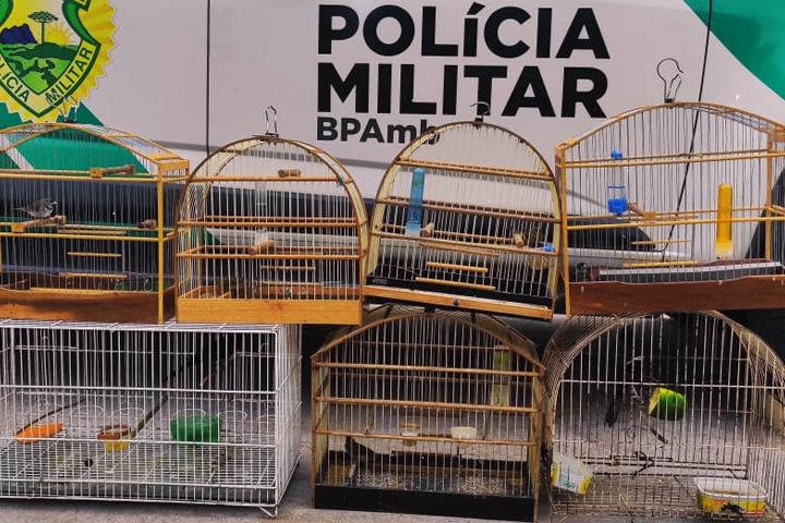 A Polícia Ambiental realizou uma fiscalização em três residências após receber uma denúncia anônima, neste domingo (19), em Iporã. Foram encontradas aves da fauna silvestre nativa brasileira em gaiolas em duas dessas casas.