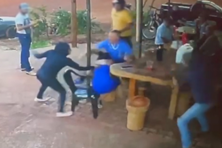 As imagens das câmeras de monitoramento flagraram o momento em que o assassinato acontece. No vídeo, a vítima aparece sentada à mesa, ao lado de um homem com camisa azul. Outras pessoas também estavam no bar.