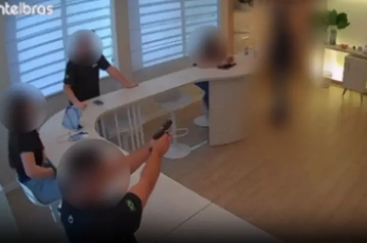 Câmeras de segurança registraram a tentativa de assalto e a reação do empresário, que efetuou cinco disparos