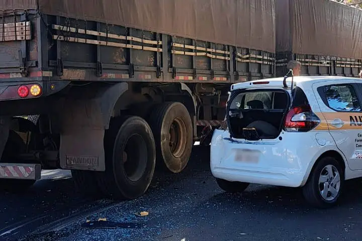 No local foi constatado que a colisão resultou apenas em danos materiais ao carro e ao caminhão. Porém, durante a checagem dos documentos dos motoristas, a PM verificou que o caminhoneiro estava com a CNH suspensa judicialmente.