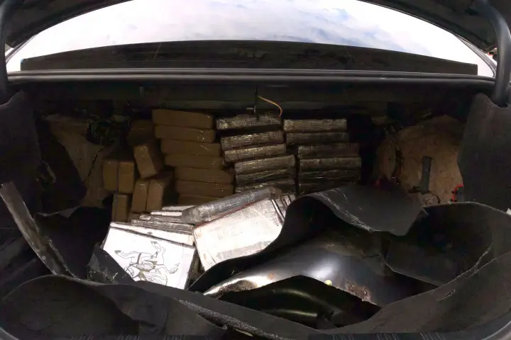 A droga estava escondida em um compartimento oculto do porta-malas do veículo