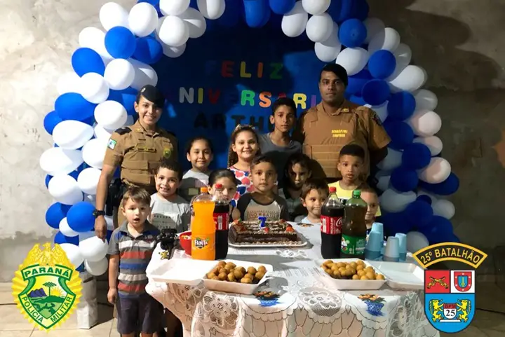 De acordo com o 25º BPM, os policiais foram convidados pelo pai do Arthur, o Fábio, para participar da festinha. O soldado Eriton e a Aspirante Leme foram até o bairro Cândido Portinari (região do Conjunto Sonho Meu) e fizeram a alegria do aniversariante e dos seus convidados.