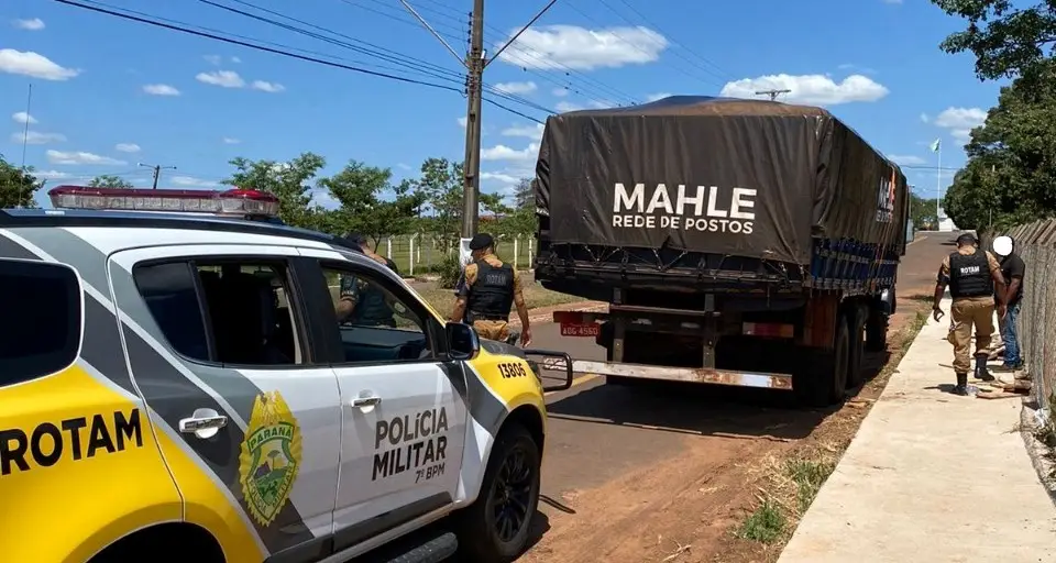Na tarde de domingo (19), a equipe Rotam realizava patrulhamento no Distrito de Jaracatiá (Goioerê), quando visualizou um caminhão parado com o capô aberto próximo ao Parque das Nações. Quando a equipe se aproximou do veículo, o condutor fugiu a pé por um pasto, adentrando em uma mata, não sendo possível localizá-lo.