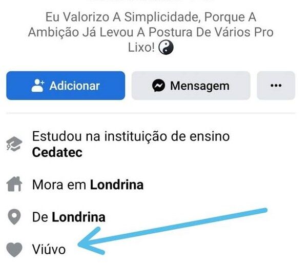 Antes de ligar para a Polícia Militar, o autor do crime ainda atualizou o status de relacionamento na rede social: “Viúvo”.