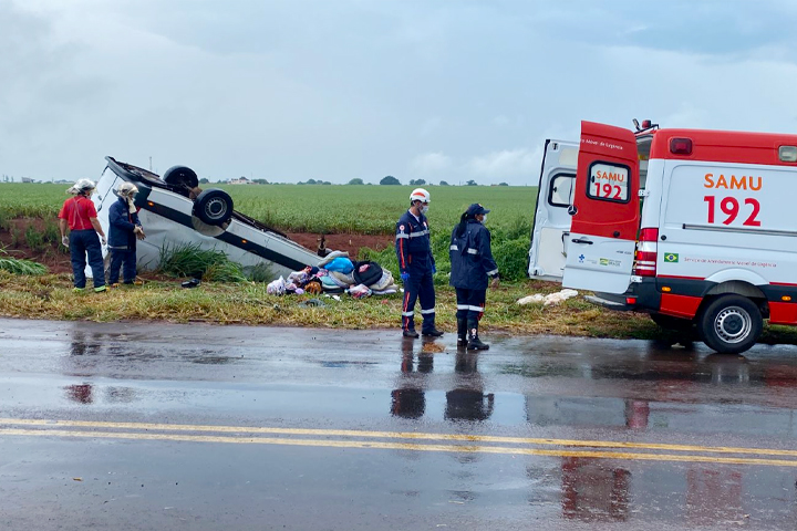 Van capota e três pessoas ficam feridas na PR-486 em Brasilândia do Sul