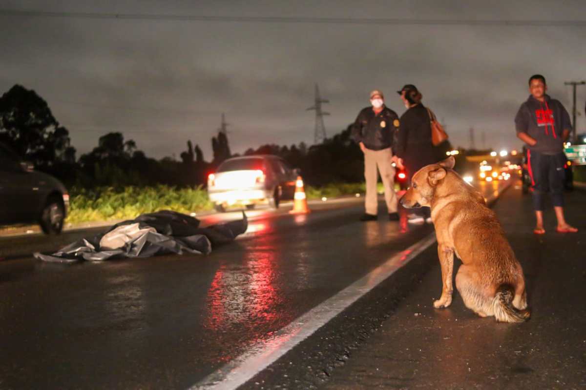 BR-476: mulher morre atropelada e cachorro fica ao lado da dona até a chegada do atendimento