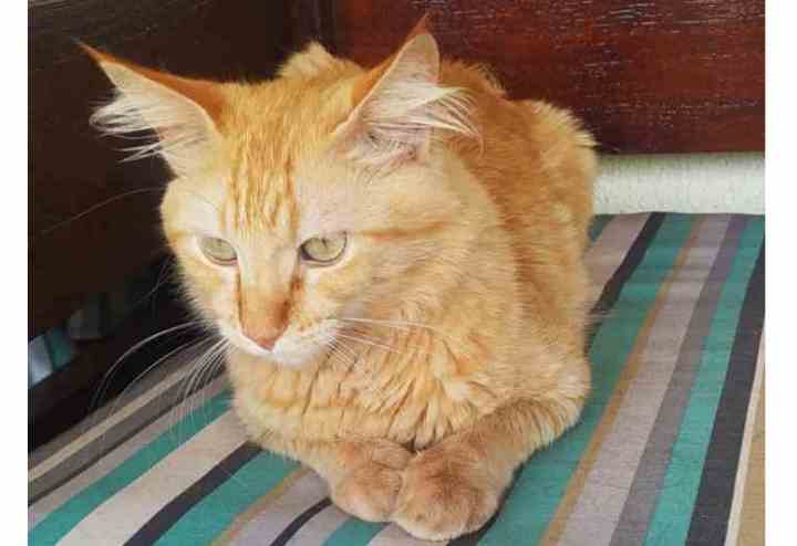 Segundo a tutora, o animal fugiu enquanto eles estavam a caminho do veterinário. Pipoca é um gatinho rajado, de cor laranja e bastante peludo.