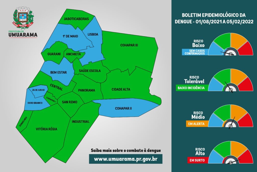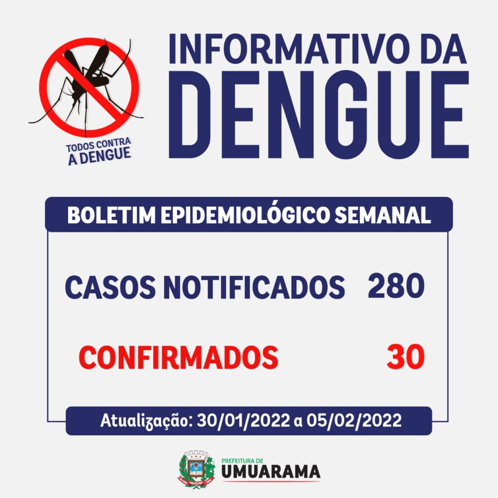 Quatro novos casos de dengue foram confirmados em Umuarama nesta semana, segundo informações do Serviço de Vigilância em Saúde Ambiental. O Informativo da Dengue divulgado nesta sexta-feira (4), revela que a cidade teve 30 casos da doença acumulados desde agosto do ano passado – a maioria dos pacientes já se recuperou.