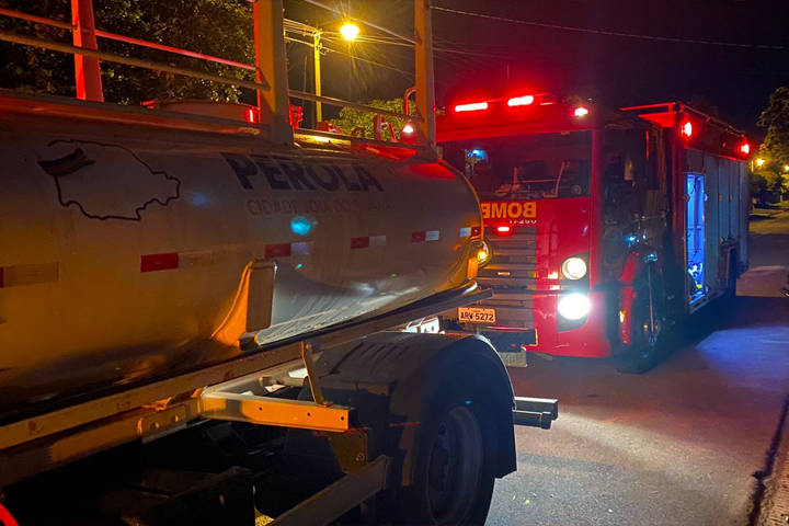 Equipes da Prefeitura e Bombeiros combatem incêndio em residência em Pérola