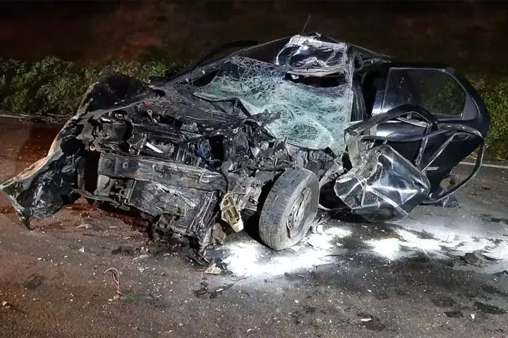 Com a força do impacto, o carro da vítima ficou irreconhecível. A frente do veículo foi totalmente destruída e pedaços do automóvel ficaram espalhados pela rodovia. O corpo da vítima foi recolhido pelo Instituto Médico Legal (IML).