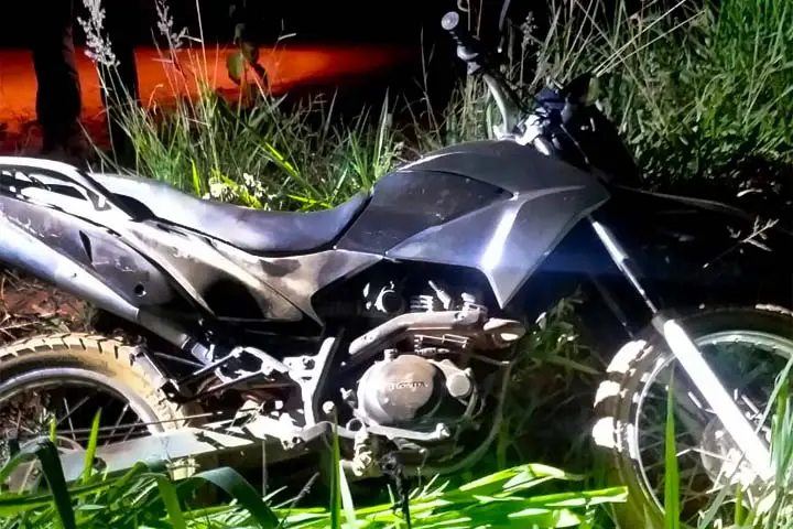 A equipe recebeu uma informação de que uma motocicleta estava abandonada às margens da estrada velha para Guaíra. No local os policiais constataram tratar de um veículo furtado.