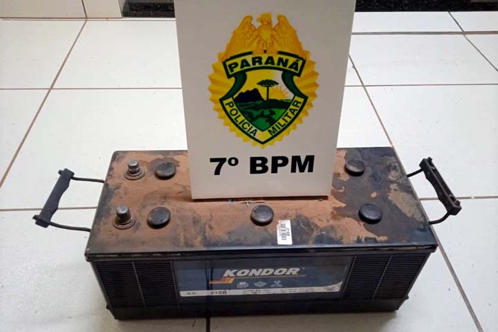 Os policiais realizaram patrulhamento no intuito de localizar o indivíduo, quando encontrou o suspeito a bordo de um veículo tracionado por animal. Ao ser abordado foi constatado que a bateria do caminhão estava na carroça junto de materiais recicláveis. O homem foi detido e encaminhado para providências.