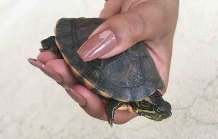 Ela disse tem a tartaruga de aquário de mais ou menos 8 centímetros. Conforme Claudia comentou que ela estava andando na varanda e se descuidaram. Ela acabou escapando para a rua.