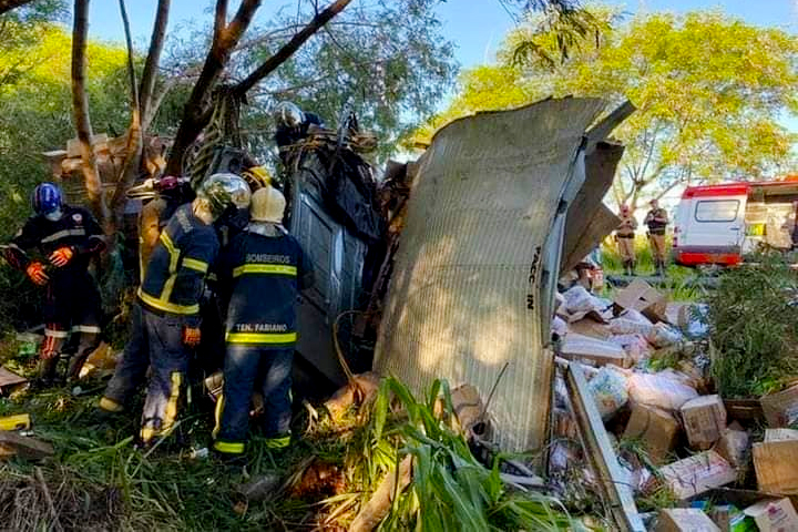 Com impacto da batida, o condutor ficou preso entre as ferragens e precisou ser retirado por equipes do Corpo de Bombeiros. Uma equipe do Samu também prestou auxílio na ocorrência.