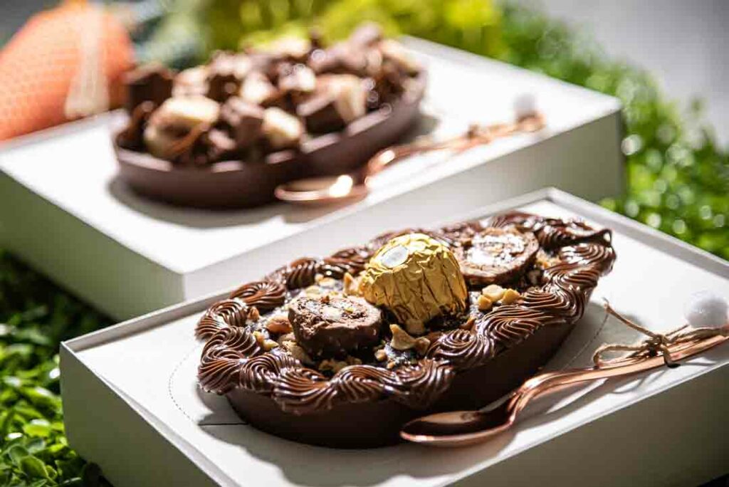 Thaís tem um cardápio com várias opções em sabores e valores. O carro chefe é o ovo de colher de Ferrero Rocher. “Ele é composto por brigadeiro 50% cacau, Nutella, avelã triturada e muito amor e carinho”, destacou.