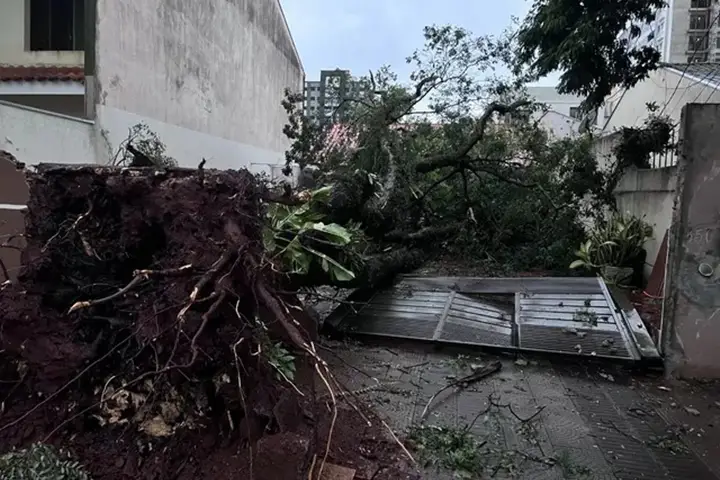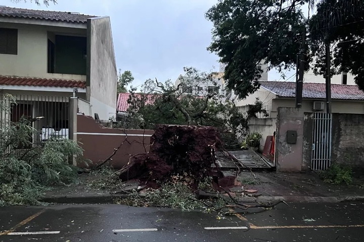 Vento forte arrancou árvores em Palotina e Maringá e bloqueou estradas