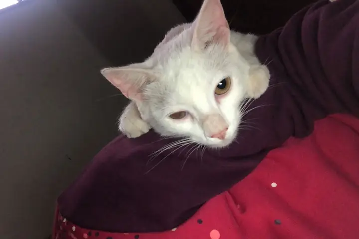 De acordo com tutora Milena, Francisco é um gatinho de pelagem branca, e cego de um olho – detalhe que é facilmente percebido ao observar o rosto do animal.