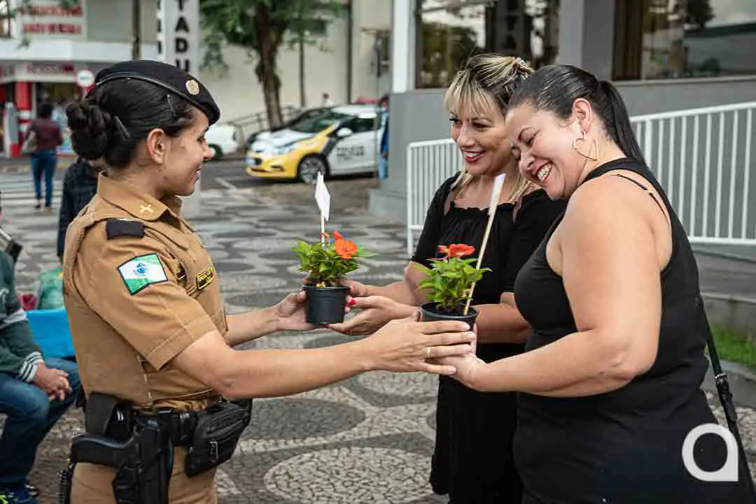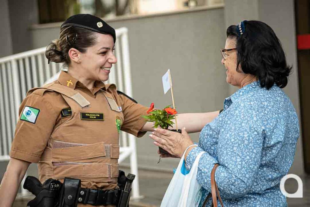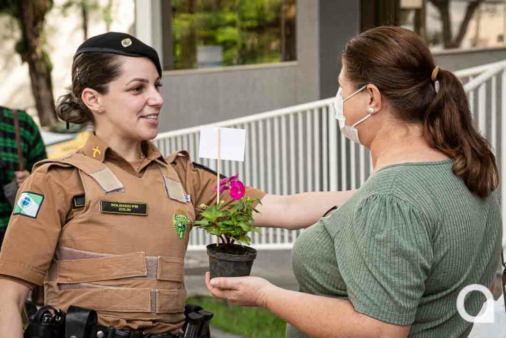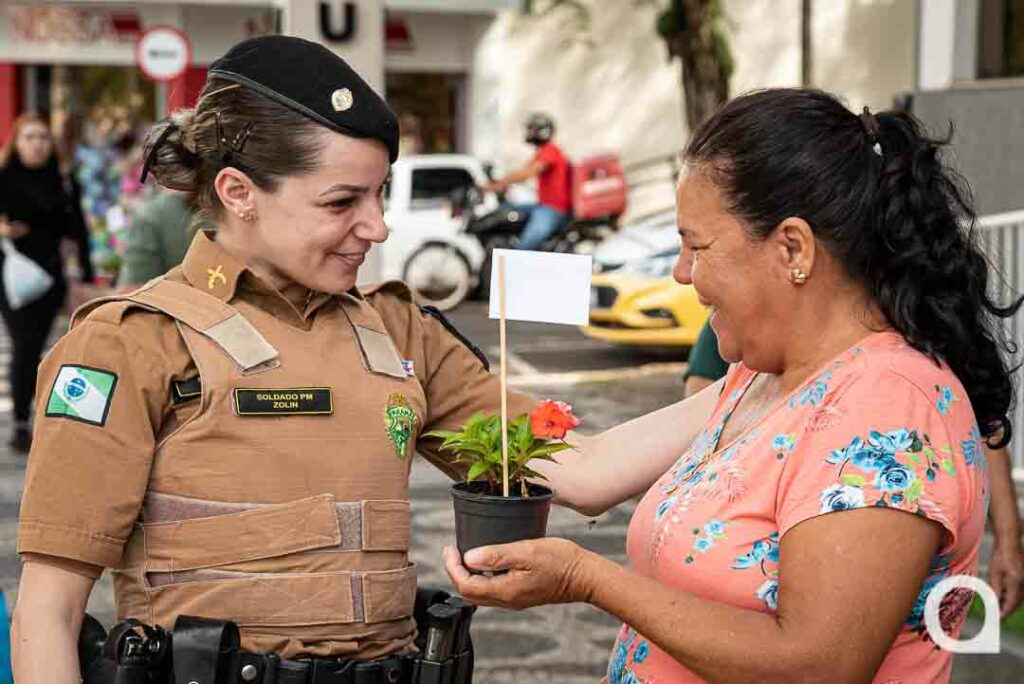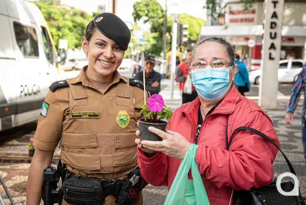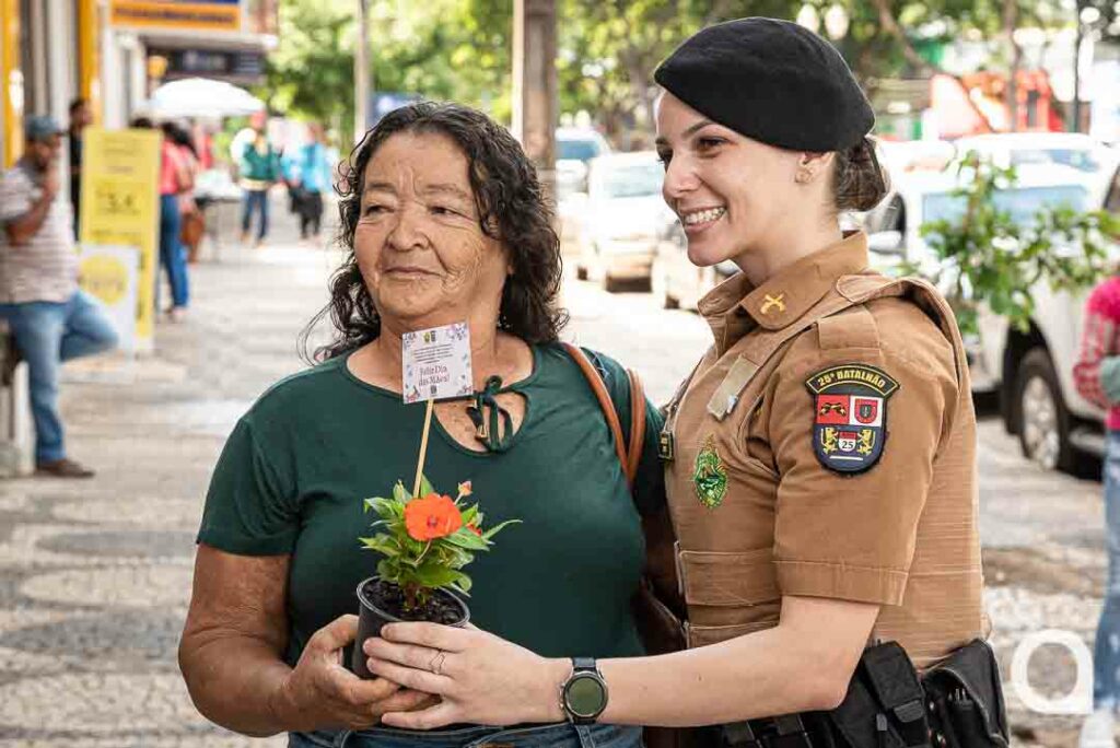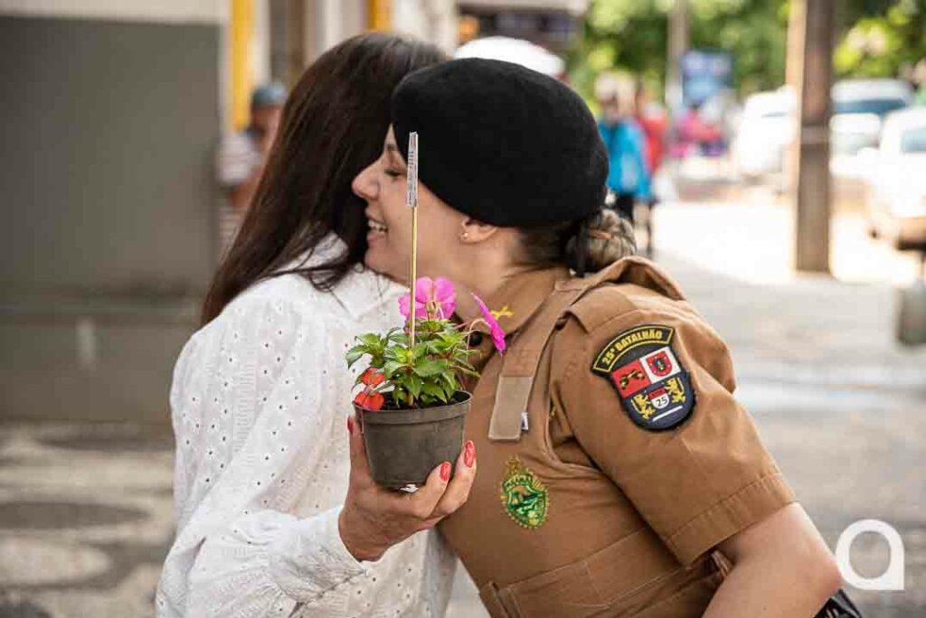 Esta foi uma forma singela de agradecer a tudo que essas incríveis mulheres fazem por seus filhos no dia a dia. “O 25º BPM entrou em contato com a Prefeitura de Umuarama e foi possível conseguir 150 vasos de flores. Com isso, viemos ao centro para fazer esta homenagem importante a todas as mães”, explicou a Aspirante Leme da Polícia Militar.