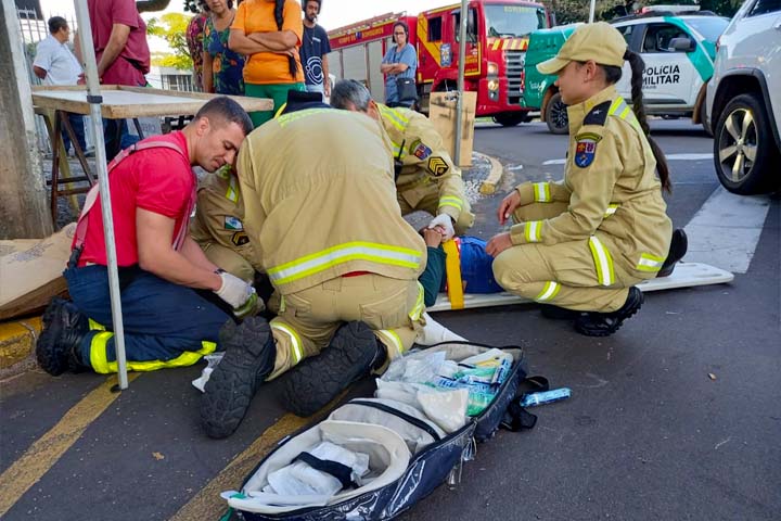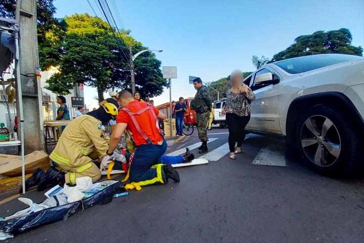 Após atropelamento, mulher é arremessada e fica com a cabeça presa em bueiro no centro de Umuarama