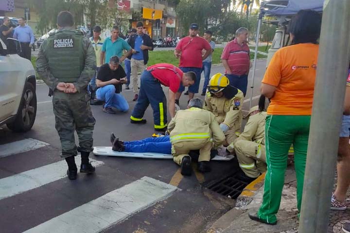 Na tarde desta segunda-feira (9) uma mulher, de 64 anos, foi arremessada e ficou presa com a cabeça no bueiro na Avenida Rio Branco nas proximidades da Praça Santos Dumont. Ela caminhava pela faixa de pedestres, quando foi atropelada por um veículo Jeep Grand Cherokee. Com a força da batida, ela foi parar “quase dentro da boca de lobo”.